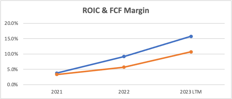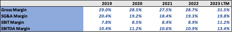 Another interesting call out by management was that they believe 75% of their SG&A is variable, which would allow them to manage the cyclicality in demand. Their performance so far in 2023 would attest to this.