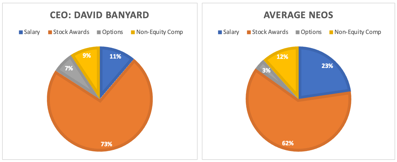 Compensation is aligned with shareholders at 70% Equity / Options for the CEO and 65%+ for other NEO’s.