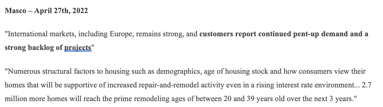 The quote from Masco succinctly sums up the favorable dynamics.