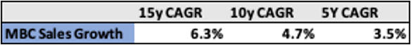 Unfortunately, we have a limited track record for MBC as a standalone company. We can see historical sales data in Fortune Brands’ financials but visibility into margins is limited.